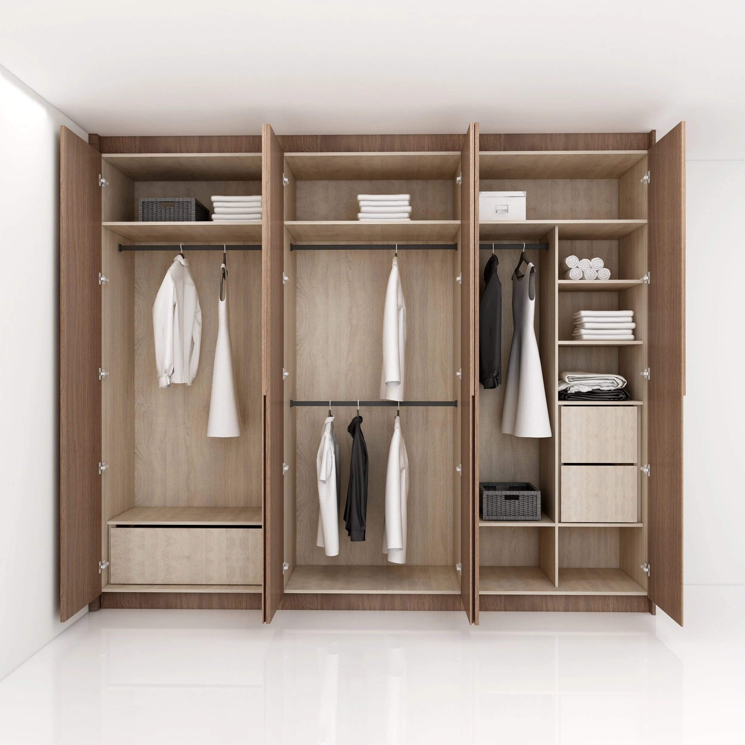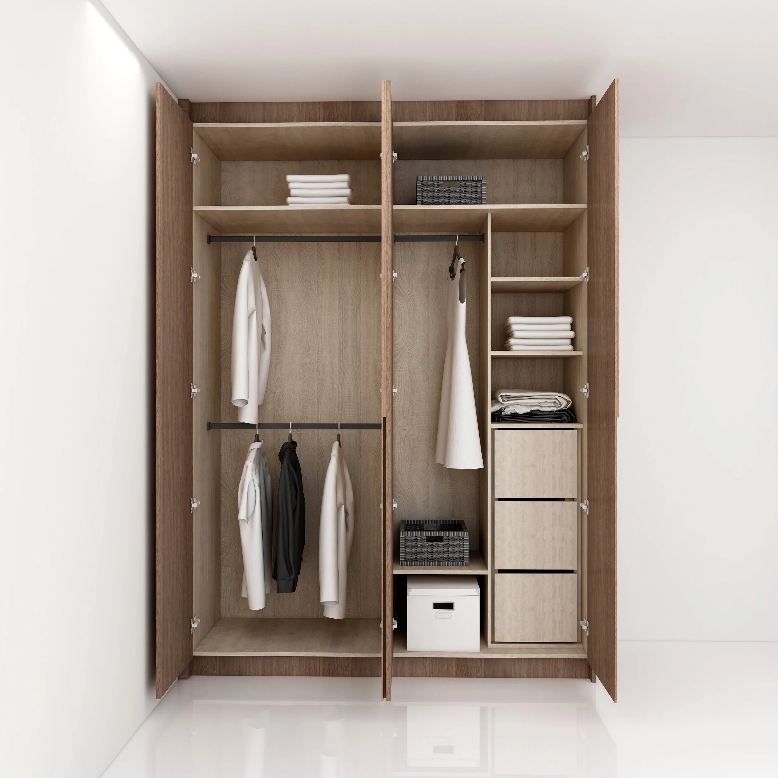 Crafted from premium particleboard with low formaldehyde levels, our wardrobes are eco-friendly, moisture-resistant, and scratch-resistant, ensuring durability and safety for sensitive skin.